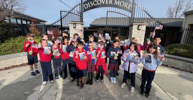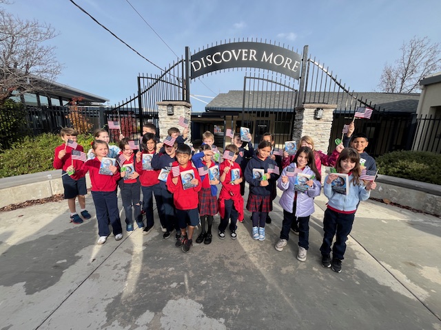 On December 3rd, 2025, the Redding chapter of the Korean War Veterans Association visited the children at St. Joseph Catholic School in Redding, CA, to deliver brand-new dictionaries to the third-grade class. Their visit brought smiles, gratitude, and a renewed focus on the importance of literacy in young learners’ lives. In addition to the dictionaries, every student from kindergarten through eighth grade received a United States flag generously provided by the American Legion—adding a special patriotic touch to the day.