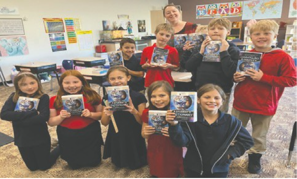 The Iron Range Rotary Club delivered dictionaries to third grade classrooms around the Iron Range, including ones at Merritt Elementary School (left) and Marquette Catholic School.