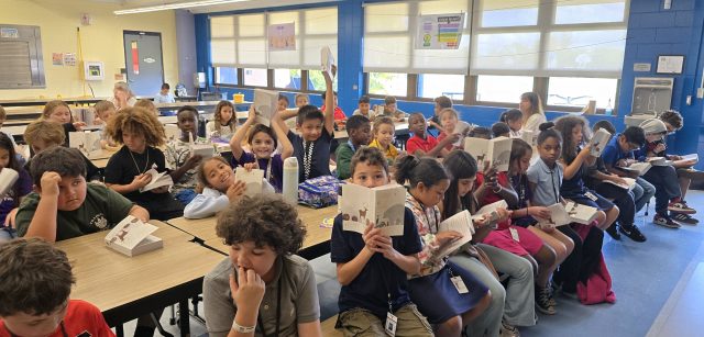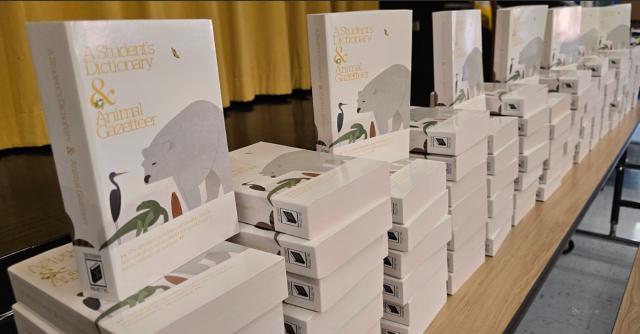 Third-grade students at Loxahatchee Groves Elementary School in Loxahatchee, Florida, celebrated as they received “A Student’s Dictionary & Animal Gazetteer” to take home as their own.