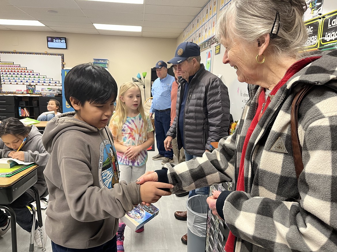 The Linderman school teacher, Kim Norman, shared that the dictionaries’ greatest value is that they are hands-on learning tools—not screens—adding, “Just look at the excitement. That’s the value of it.”